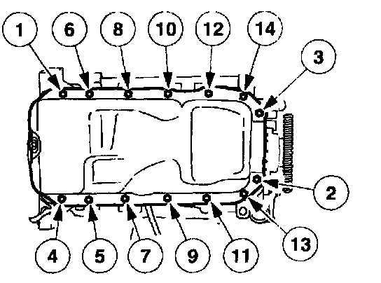 Stage 1: Starting from the rear of the oil pan, hand tighten the fasteners.