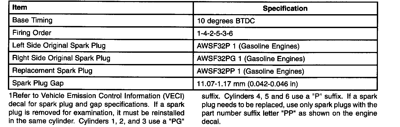 ENGINE IGNITION SPECIFICATIONS-3.0L