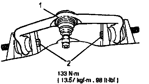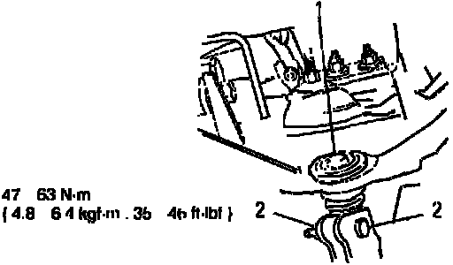 ^ The forward front suspension upper arm nut must be tightened first while the arm is held at the curb position ride height.