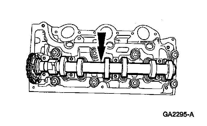 ^ After installing the bolts, check the camshaft for free rotation.