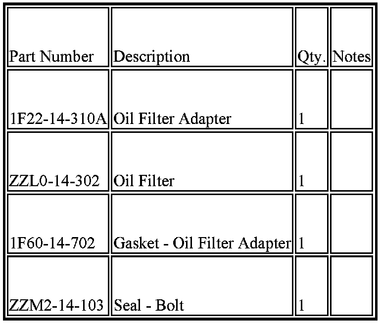 5. Position the new oil filter adapter gasket (1F60-14-702) to the oil filter adapter (1F22-14-310A).