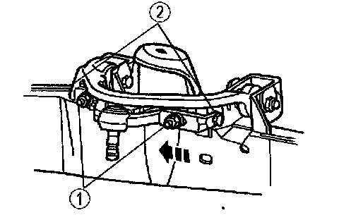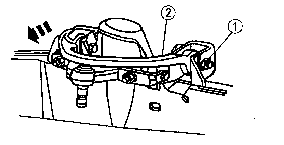Note: A pry bar can be used between the front suspension arm bushing joint and the frame pocket to aid in moving the arm.