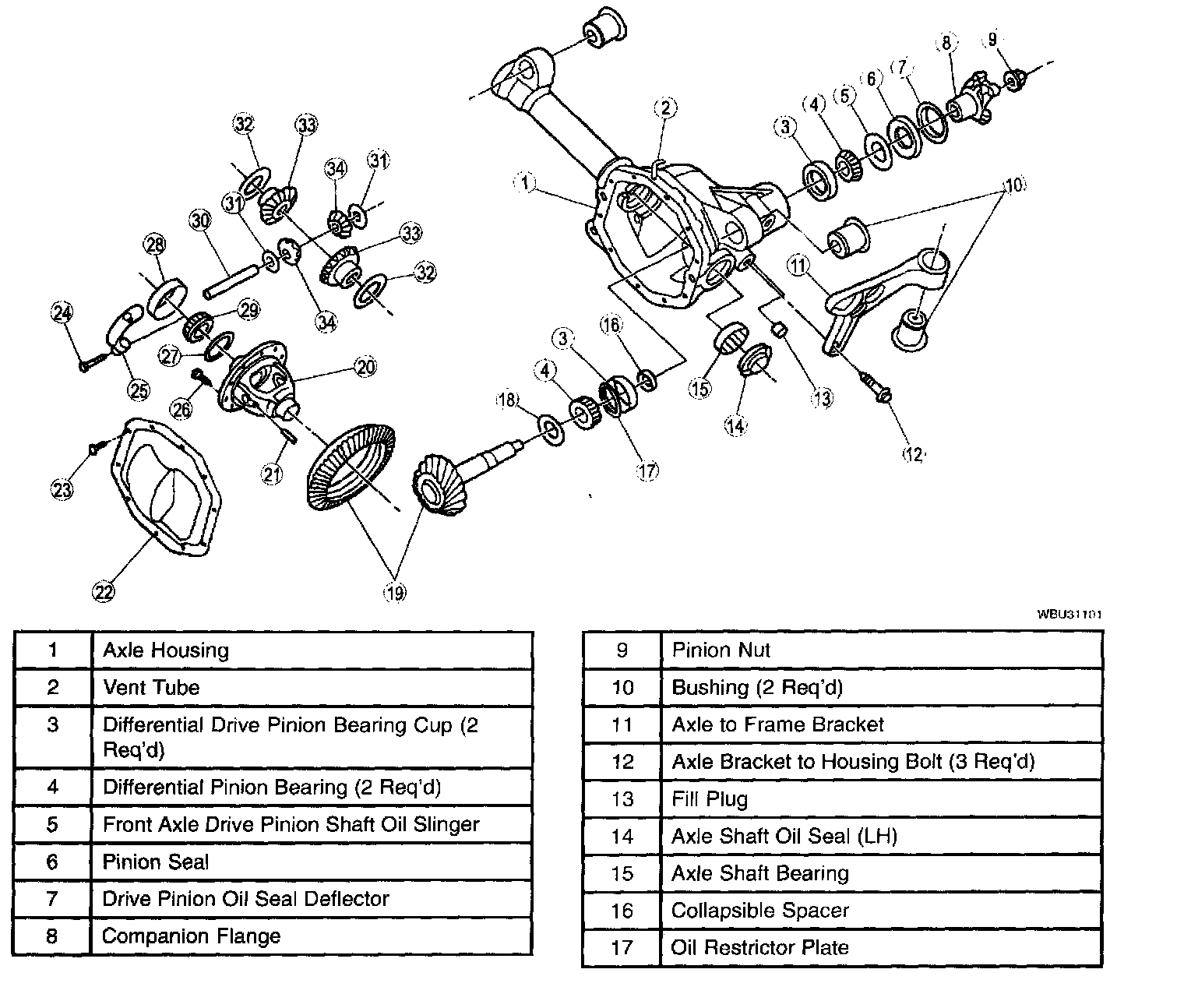 ^ Many components and surfaces in the axle are precision machined. Careful handling during disassembly, cleaning, inspection, and assembly can prevent unnecessary damage to machined surfaces.