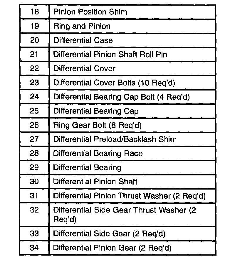 ^ Whenever the differential pinion bearing cups are replaced, the differential pinion bearing must be replaced.