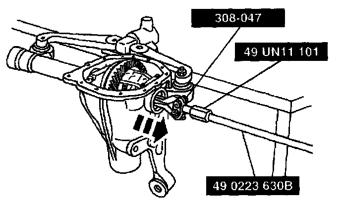 6. Use Bearing Cup Puller ST 308-047 or equivalent and Impact Slide Hammer ST 49 0223 630B and Adapter ST49 UN11 101 to remove the LH axle bearing.