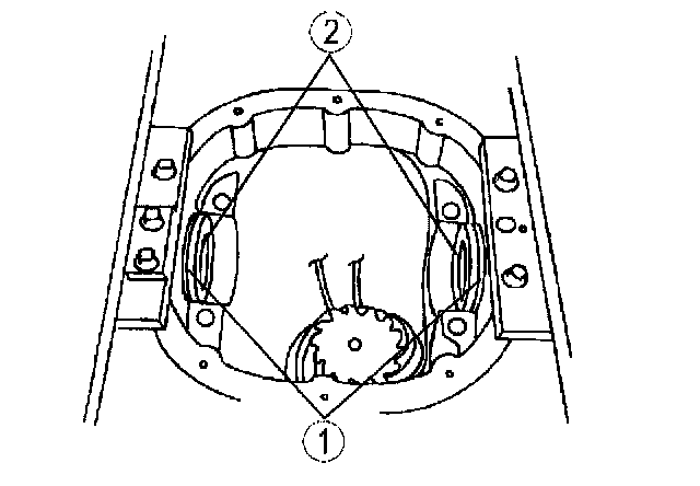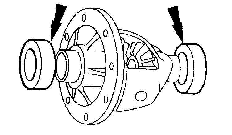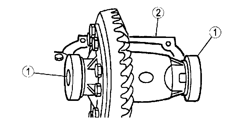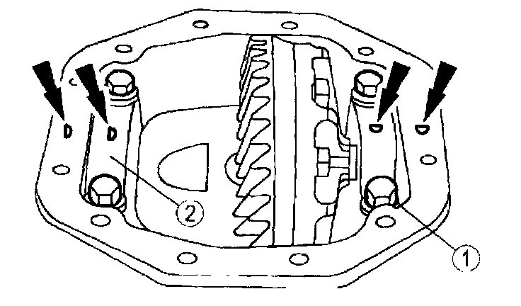 (1) If removed, apply a light coating of axle lubricant meeting specification API to one side of the differential bearing shims to help hold them in place.