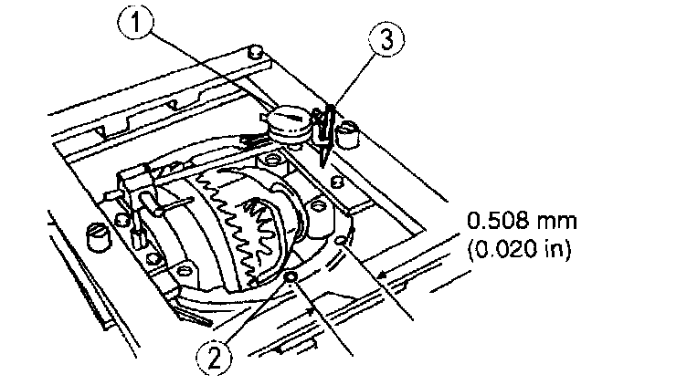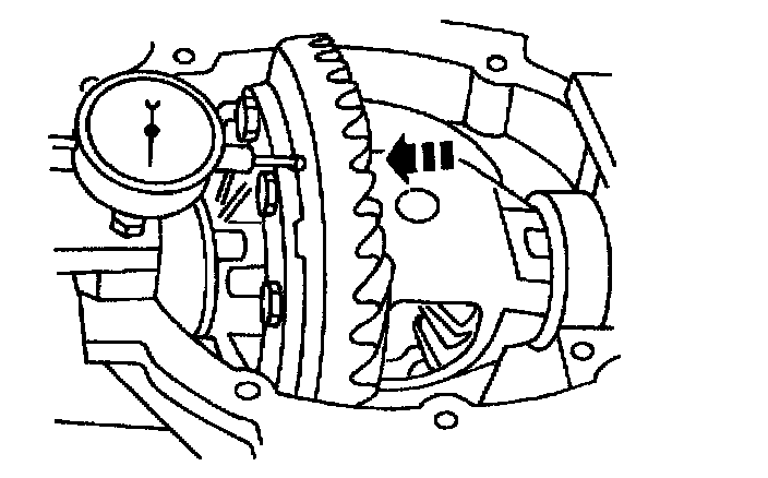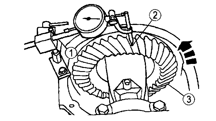 (3) Turn the ring gear without turning the pinion gear and record the measurement.