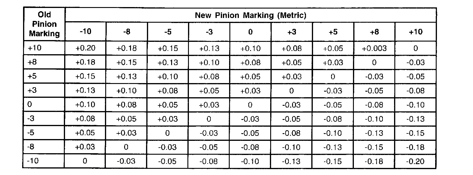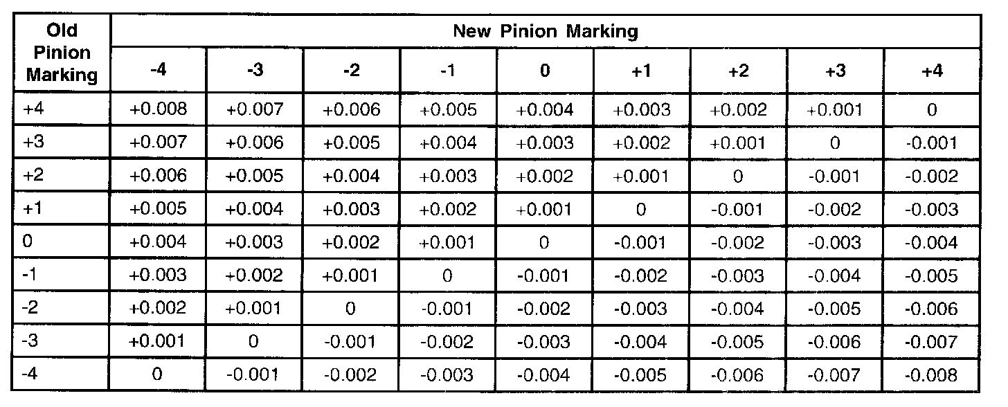 If the drive pinion is marked with a minus (-) reading, this amount must be added to the thickness dimension.