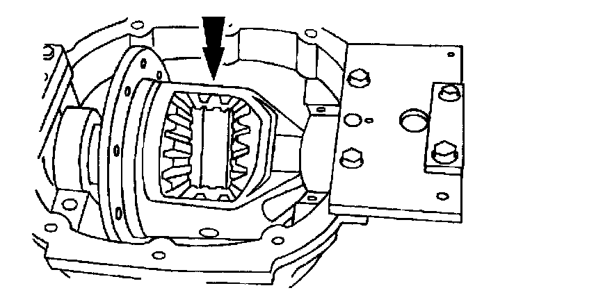 (2) Position the differential case in the axle housing with the three missing bolts positioned down.