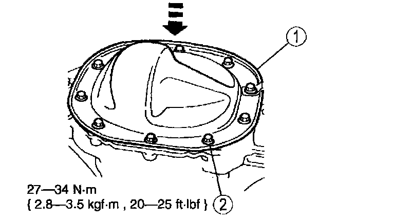 ^ Make sure the machined surfaces on both the axle housing and the differential cover are clean and free of lubricant before installing the new silicone sealant. The inside of the axle housing must be covered when cleaning the machined surface to prevent contamination.