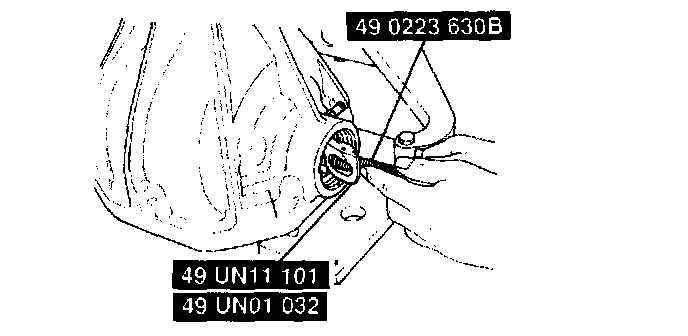 4. Use Axle Bearing Remover SST 49 UN01 032, Impact Slide Hammer SST 49-0223-630B and Adapter SST 49 UN11 011 to remove the axle tube bearing.