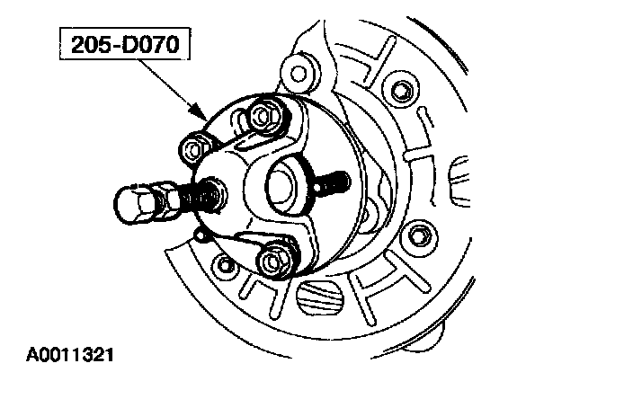 ^ Do not use a hammer to separate the outboard CV joint from the hub. Damage to the outboard CV threads and to internal components may result.