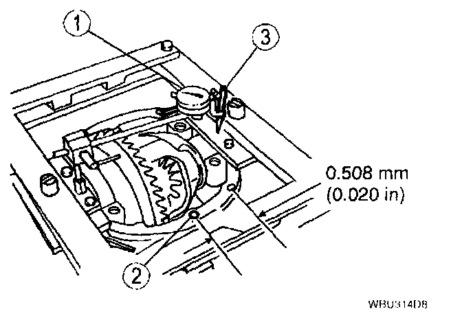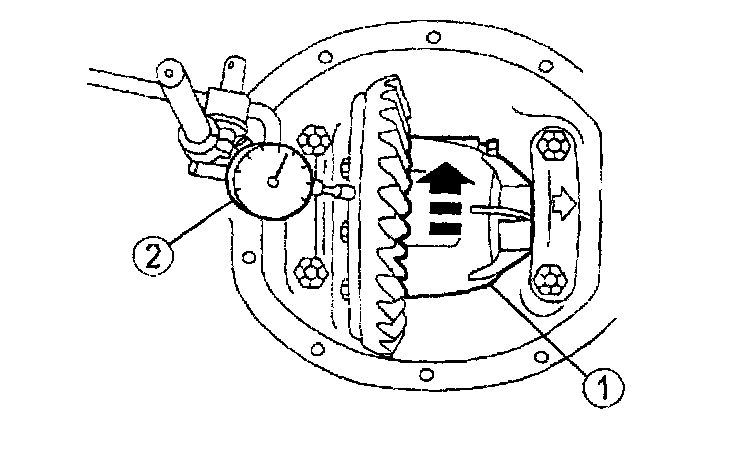 ^ If the ring gear runout exceeds specification, the cause may be a warped ring gear, a damaged differential case, loss of differential bearing preload or a damaged axle housing.