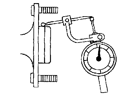 2. Rotate the hub or flange one full turn and note the maximum and minimum readings. The difference between the maximum and minimum readings will be the total pilot runout. Pilot runout must not exceed 0.15 mm (0.006 inch).