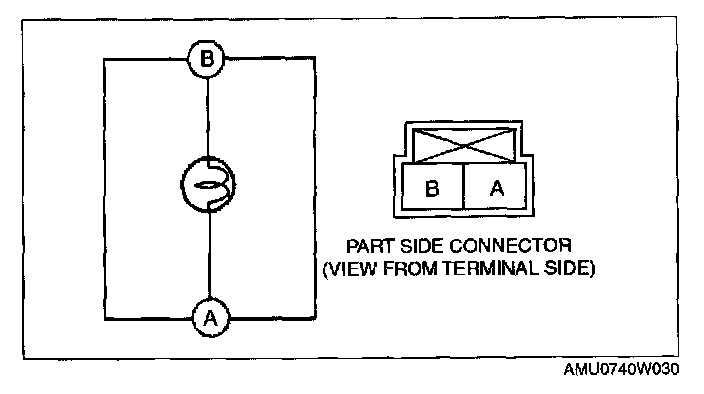 1. Connect the battery positive voltage to terminal B and ground to terminal A.