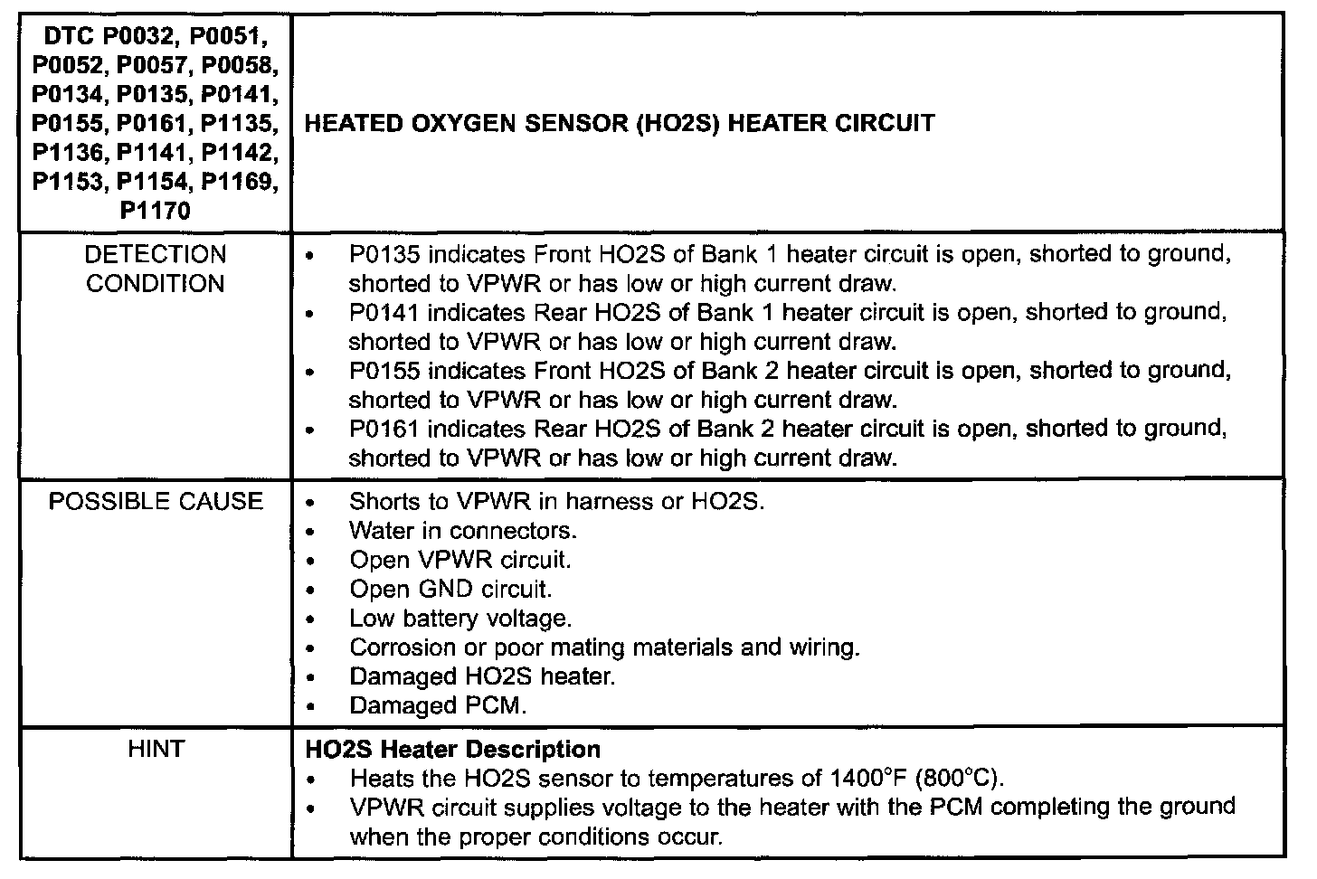 Detection Condition/Possible Cause: