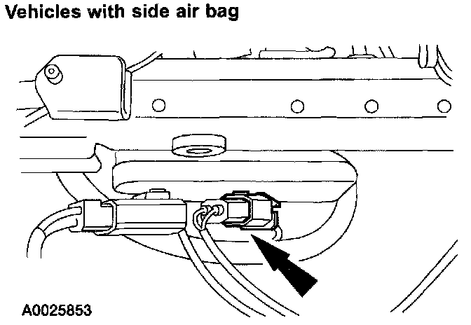 - Restraint system diagnostic tools must be installed under the seats in the side air bag to floor connector.
