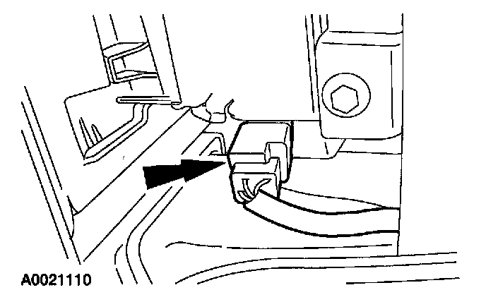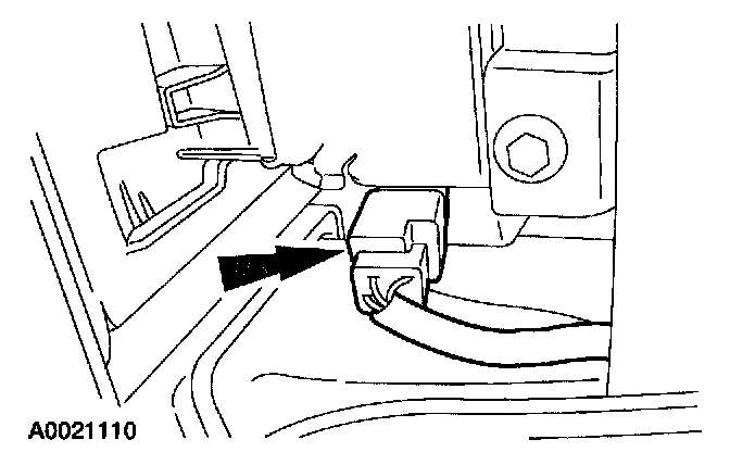21. Remove the special tool from the driver seat safety belt pretensioner body harness electrical connector.