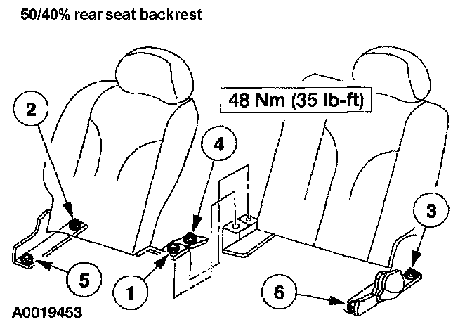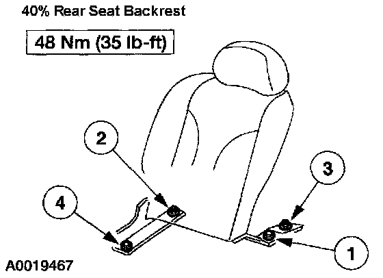 3. Tighten the 60/40% rear seat backrest nuts and bolts in the sequence shown.
