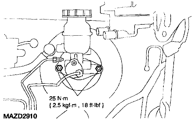 ^ Whenever the brake master cylinder is removed from the brake booster, new nuts must be installed.