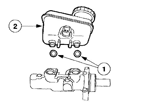 ^ Whenever installing a new brake master cylinder reservoir, install new seals.Lubricate the new seals with clean brake fluid.
