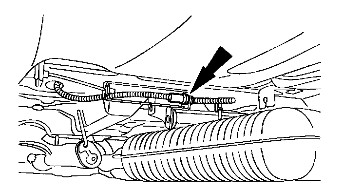 7. Disconnect the rear parking brake cable to fuel tank support strap.