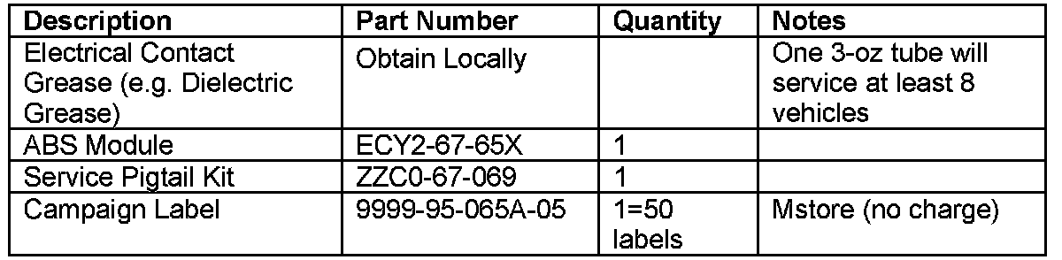 The ABS Module and Service Pigtail Kit will be restricted from dealer-ordering.