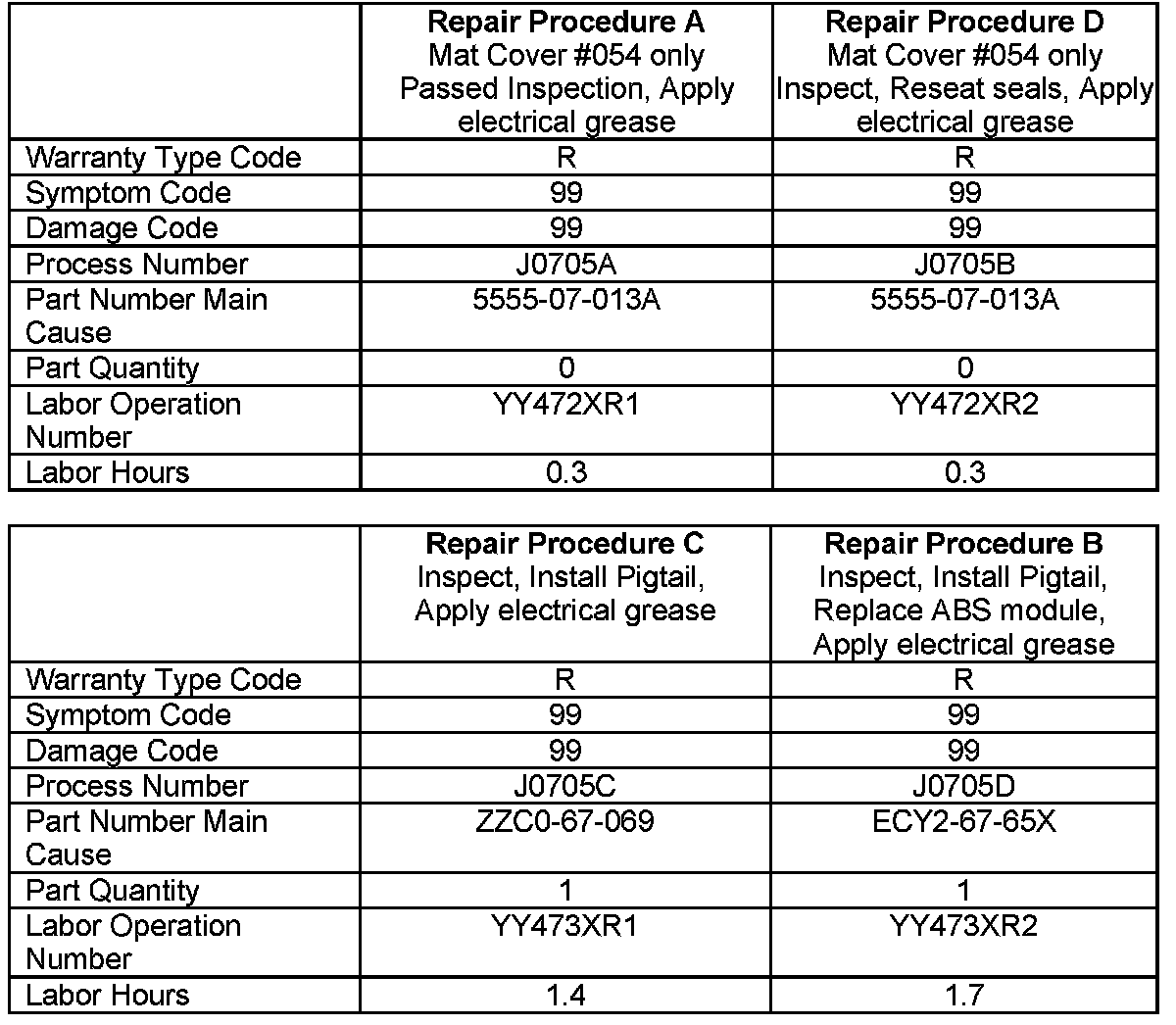 FOR REPAIR PROCEDURE B: