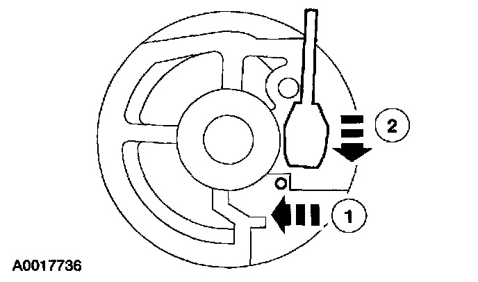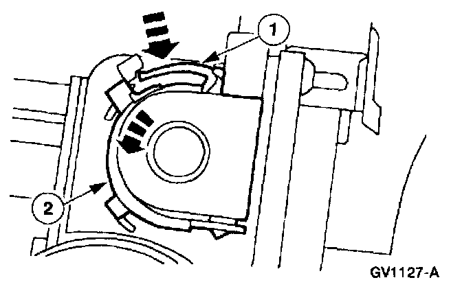 1. Squeeze the cruise control cable cap retaining tab.
