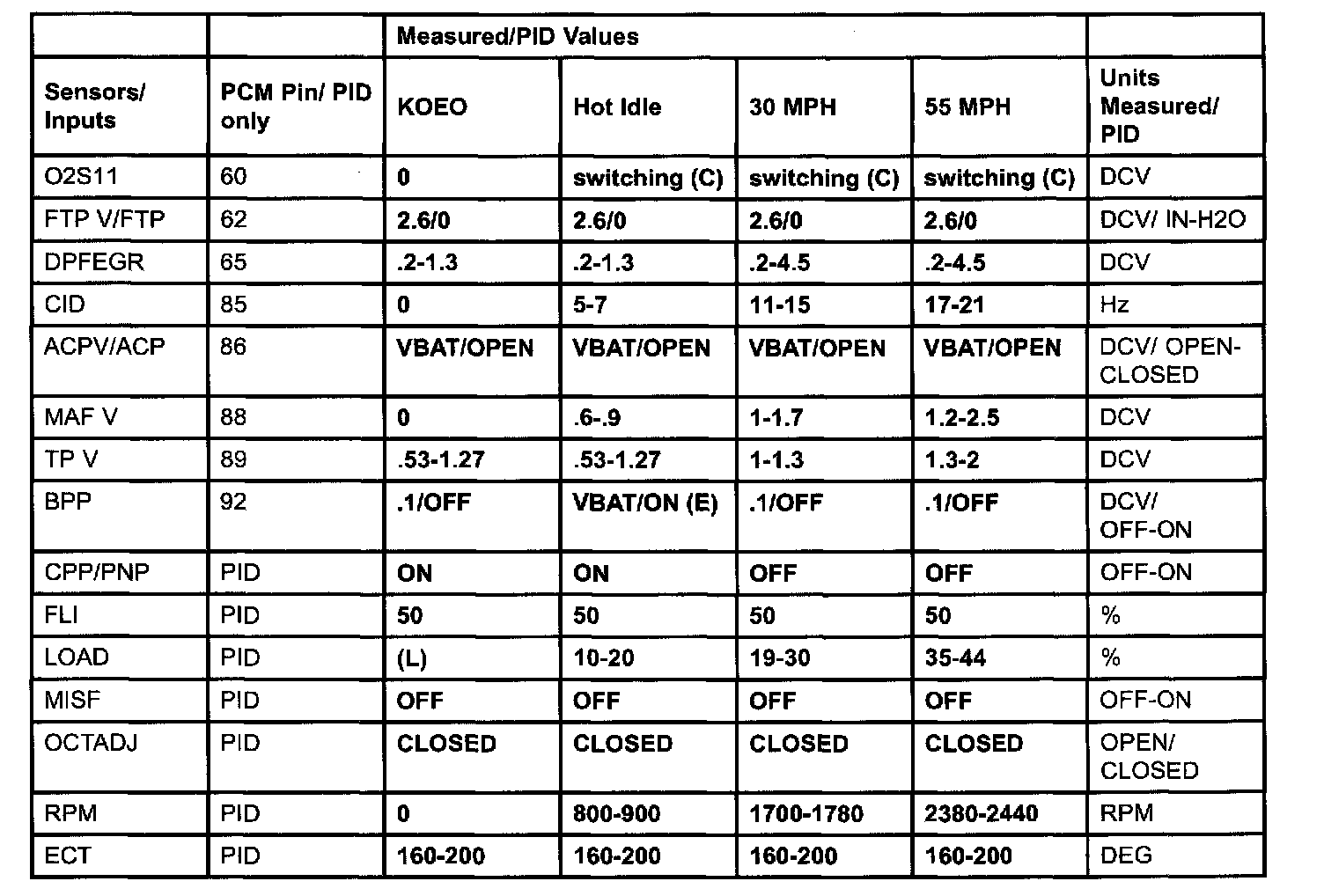 Generic OBD II PID Values: