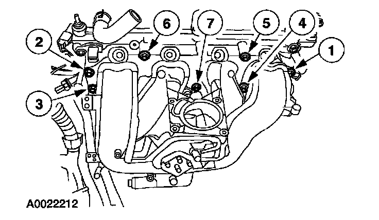 1. Install the intake manifold and tighten using the sequence shown.