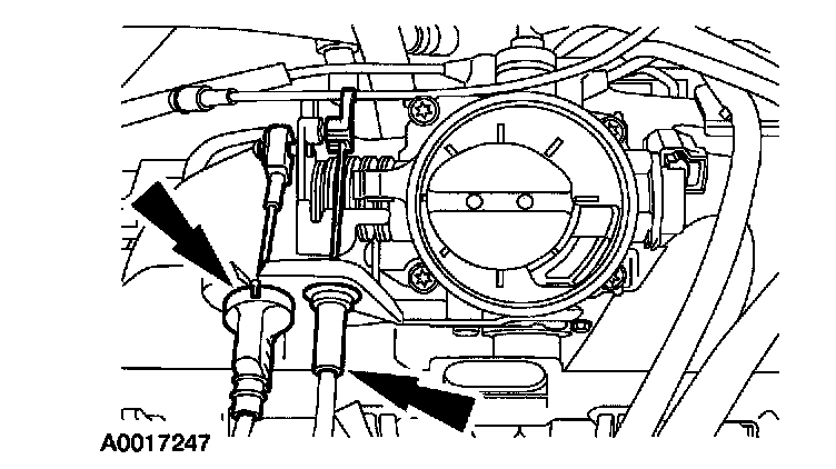 8. Disconnect the throttle cables and the cruise control cable (if equipped).