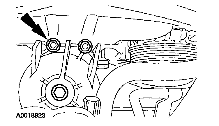 32. Remove the lower power steering pump bolts and position the pump aside.