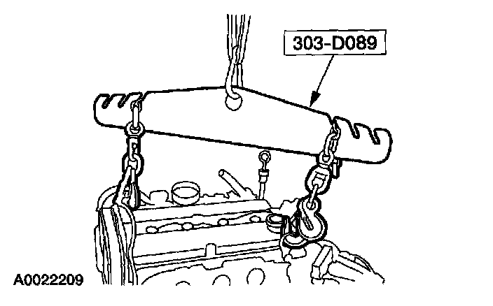 42. Install the special tool and suitable lifting device and remove the engine and transaxle as an assembly.