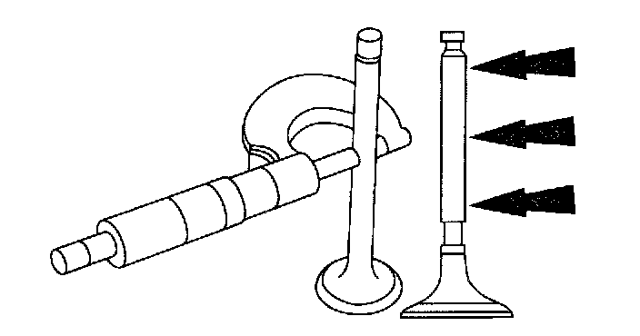 VALVE-STEM DIAMETER1. Measure the diameter of each intake and exhaust valve stem at the points shown. Verify the diameter is within specification. Refer to SPECIFICATIONS.