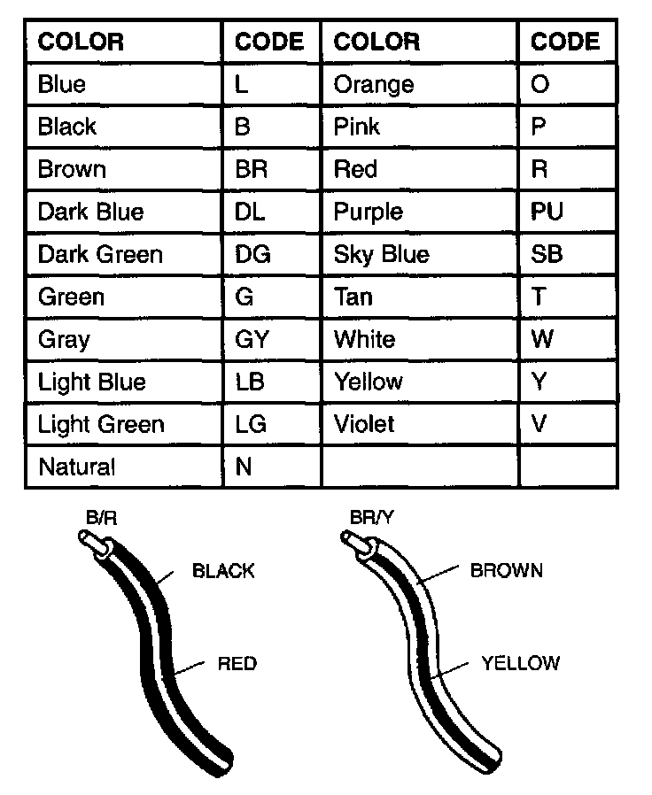 The first letter indicates the base color of the wire and the second, the color of the stripe.