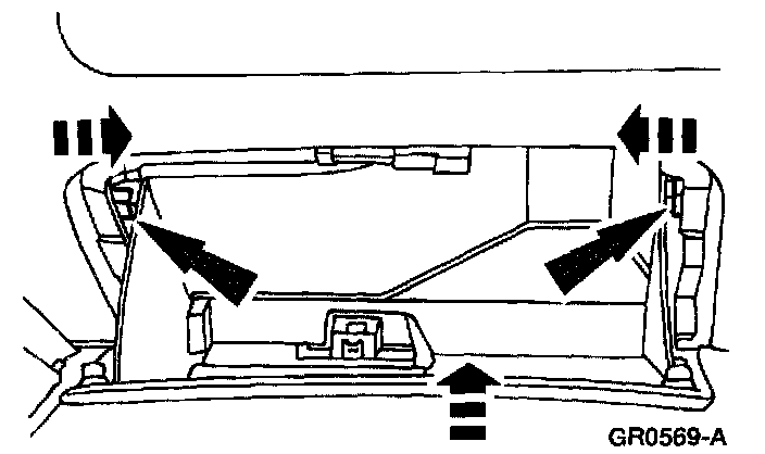 1. Press the release tabs inward while raising the glove compartment.