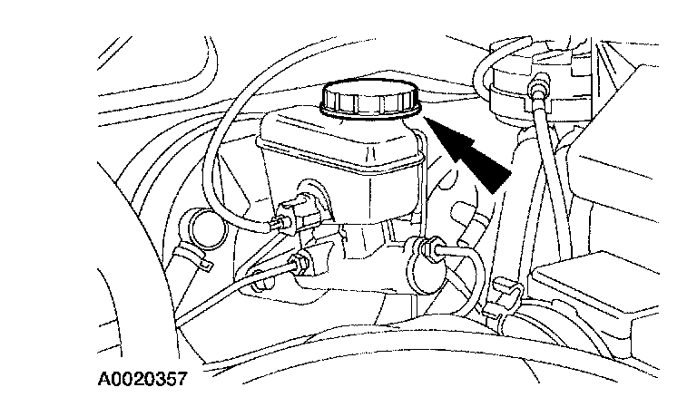 2. Remove the reservoir cap and fill the brake master cylinder reservoir with brake fluid.