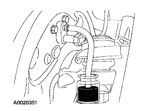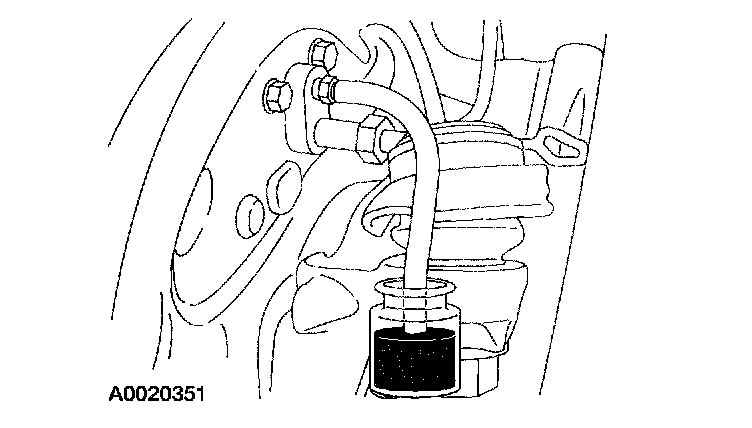 4. Attach a rubber drain hose to the RH rear bleeder screw and submerge the free end of the hose in a container partially filled with clean brake fluid.