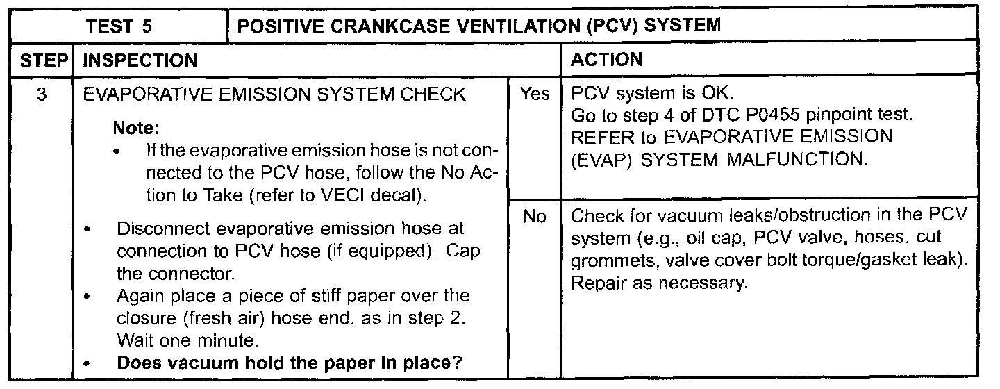 Test 5: Positive Crankcase Ventilation (PCV) System