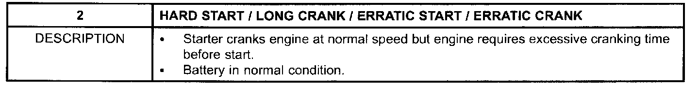 2. Hard Start/Long Crank/Erratic Start/Erratic Crank