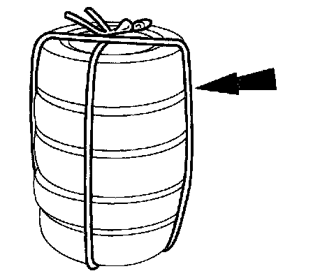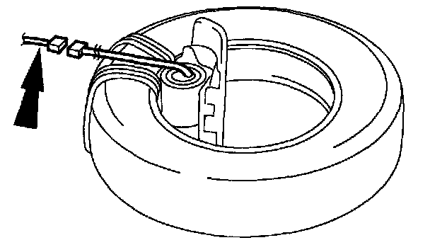 4. Secure the passenger air bag module to the tire by wrapping the wiring harness around the tire and around the bolts at least four times.