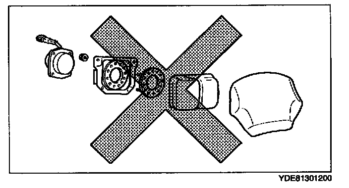 Oil, grease, water, etc. on components may cause the air bag modules and pretensioner seat belt to fail to deploy in an accident, which may cause serious injury. Do not allow oil, grease, water, etc., on components.
