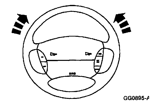 ^ Do not hold the steering wheel against the stops for more than three to five seconds at a time. Damage to the power steering pump can occur.
