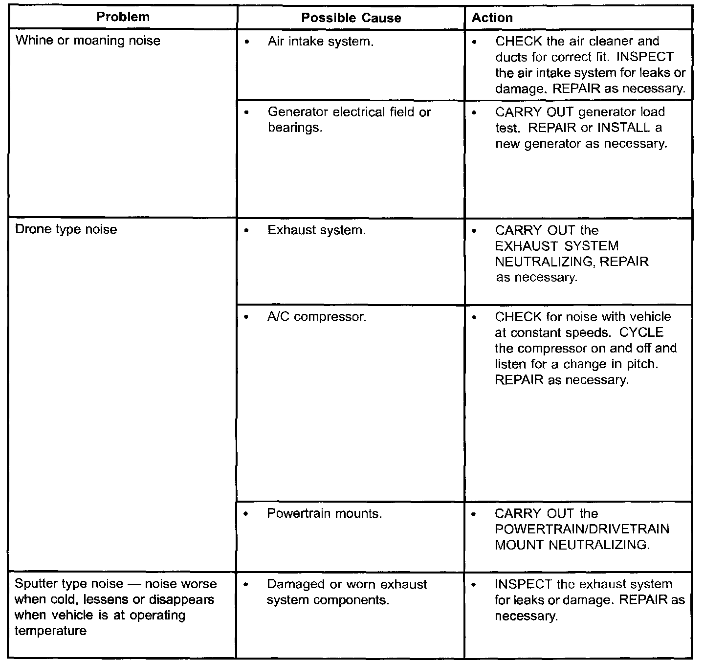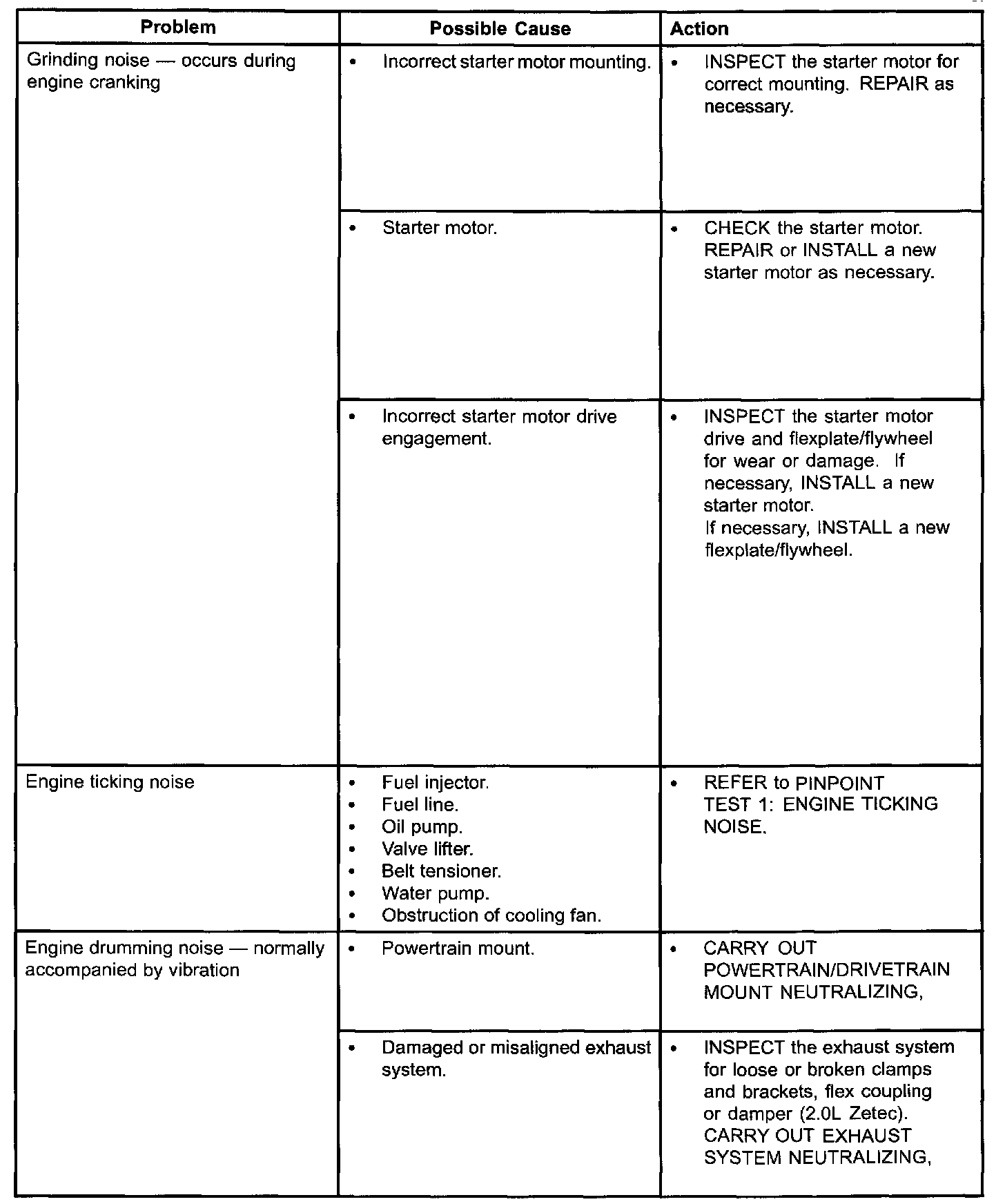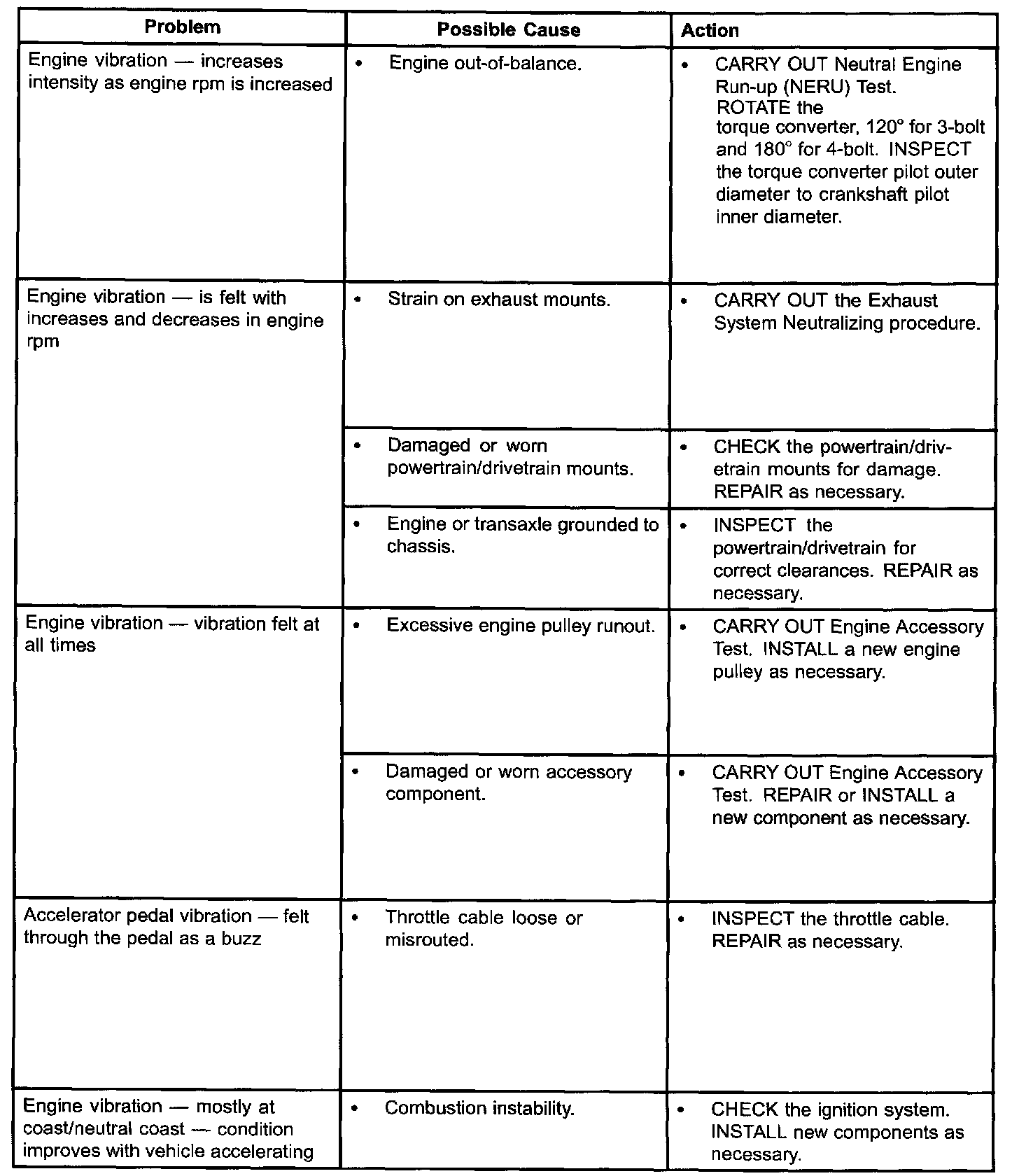 SYMPTOM TROUBLESHOOTING CHART-ENGINE NOISE/VIBRATION