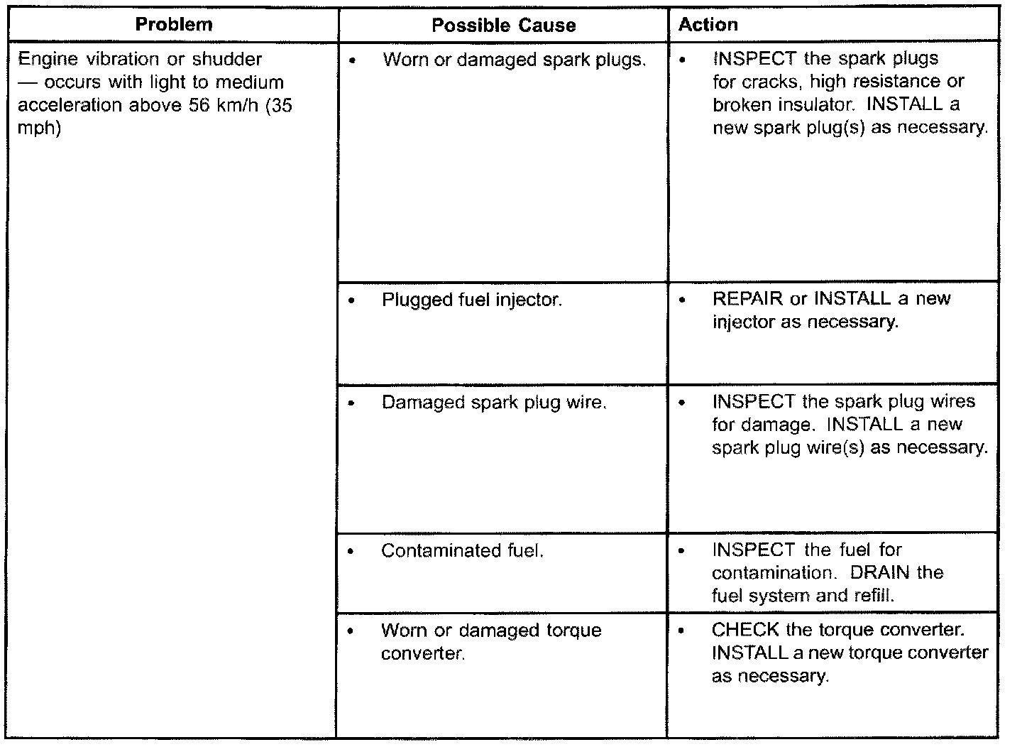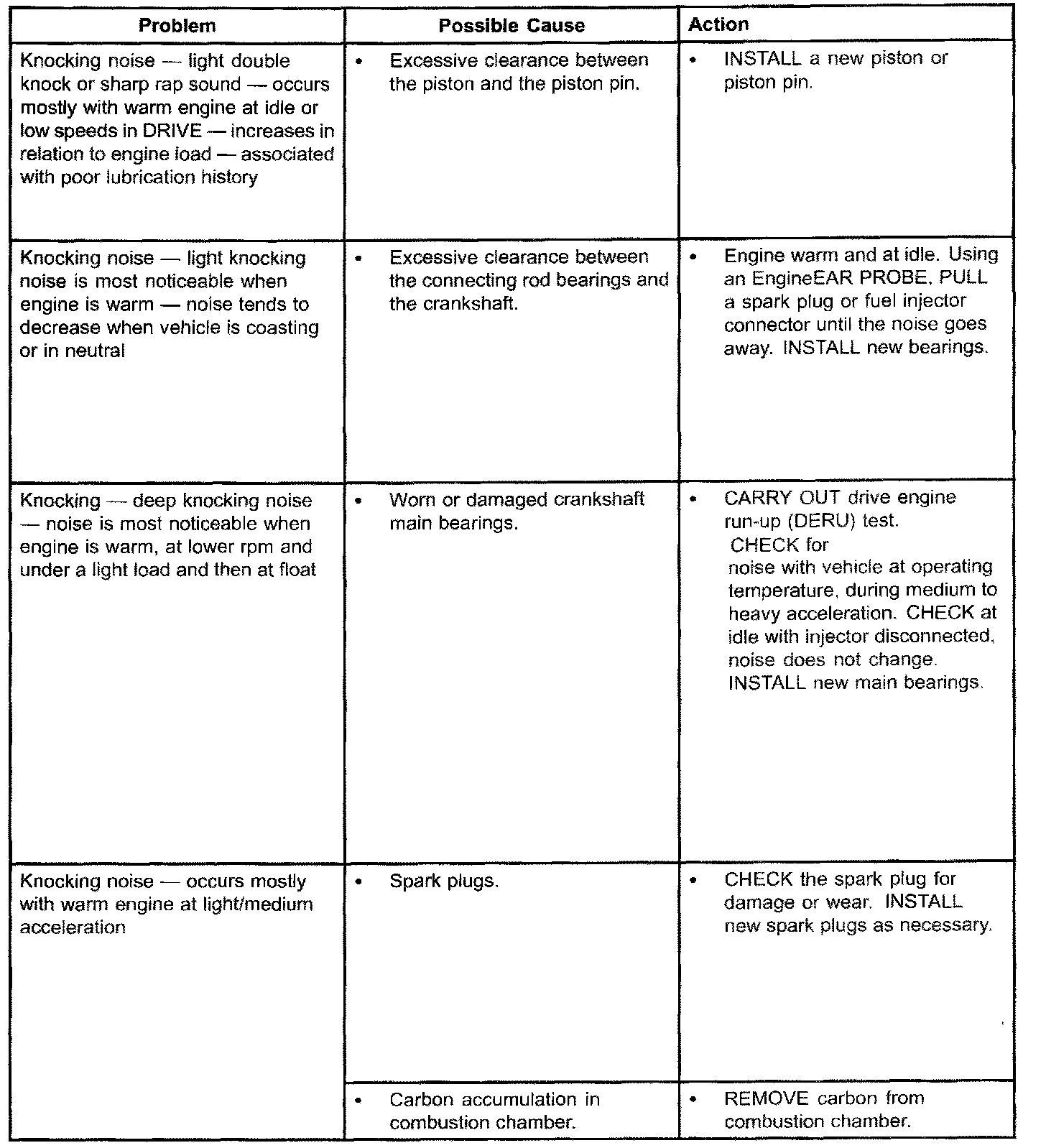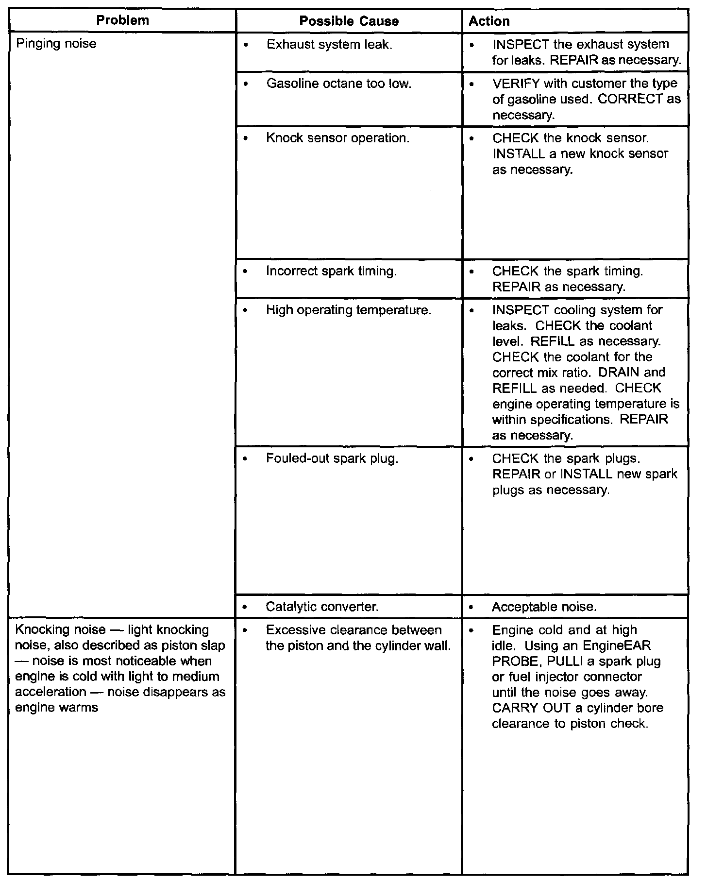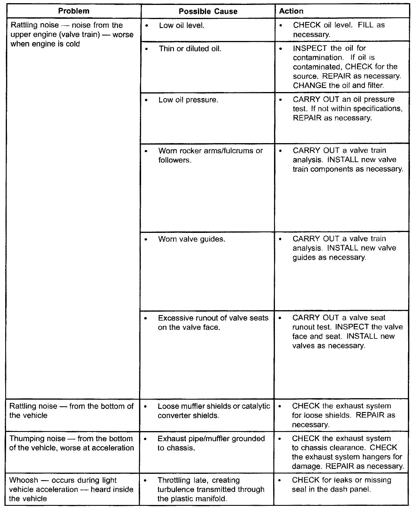 SYMPTOM TROUBLESHOOTING CHART-ENGINE NOISE/VIBRATION