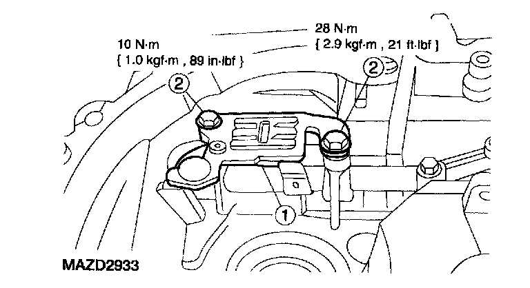 2. Install the shift control shaft selector lever bolt.