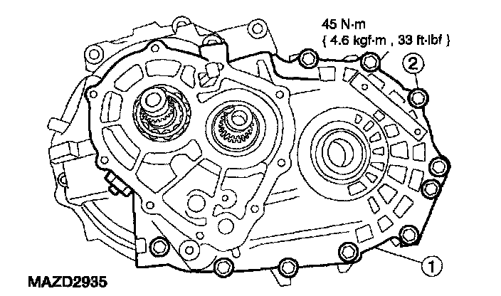 ^ The transaxle case must be installed within four minutes after applying silicone gasket and sealant.