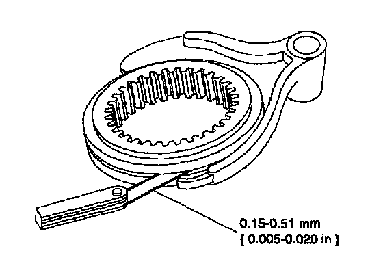 71. Measure the clearance between the fifth/reverse synchronizer sleeve and its shift fork.