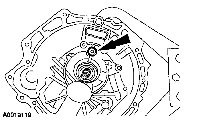 2. Face the reverse idler gear shaft hole in the direction shown.
